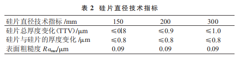 1.3.2 超精密磨削研究現(xiàn)狀 (1)硅片自旋轉(zhuǎn)磨削。采用略大于硅片的工件轉(zhuǎn)臺(tái),通過真空吸盤每次裝夾一個(gè)硅片,硅片的中心與轉(zhuǎn)臺(tái)的中心重合,杯形金剛石砂輪的工作面調(diào)整到硅片的中心位置。磨削時(shí),硅片和砂輪繞各自的軸線回轉(zhuǎn),砂輪只進(jìn)行軸向進(jìn)給。在超精密磨削中,金剛石砂輪的修整情況對零件的加工質(zhì)量有決定性影響。其修整過程主要包括修平 / 結(jié)合劑去除和去尖,修平一般采用金剛石砂輪磨削相對軟質(zhì)物質(zhì)。結(jié)合劑去除主要采 用電解法和接觸放電法。目前,采用硅片自旋轉(zhuǎn)磨削方法加工直徑 150~ 400 mm(6~16 英寸)硅片,可實(shí)現(xiàn)硅片的正面超精密磨削和背面磨削減薄,所達(dá)到的技術(shù)指標(biāo)見表 2。